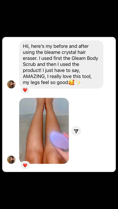 Using Nano-Crystalline technology, Bleame™ Crystal Hair Eraser allows the hair to clump and break from the surface when rubbed gently on the skin. This process also helps exfoliate, revealing baby smooth skin after use 💜
