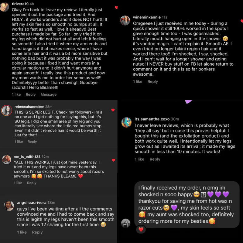 Bleame vs Waxing vs Laser: Get smooth, hair-free skin -  no pain or high costs like with waxing or laser treatments.